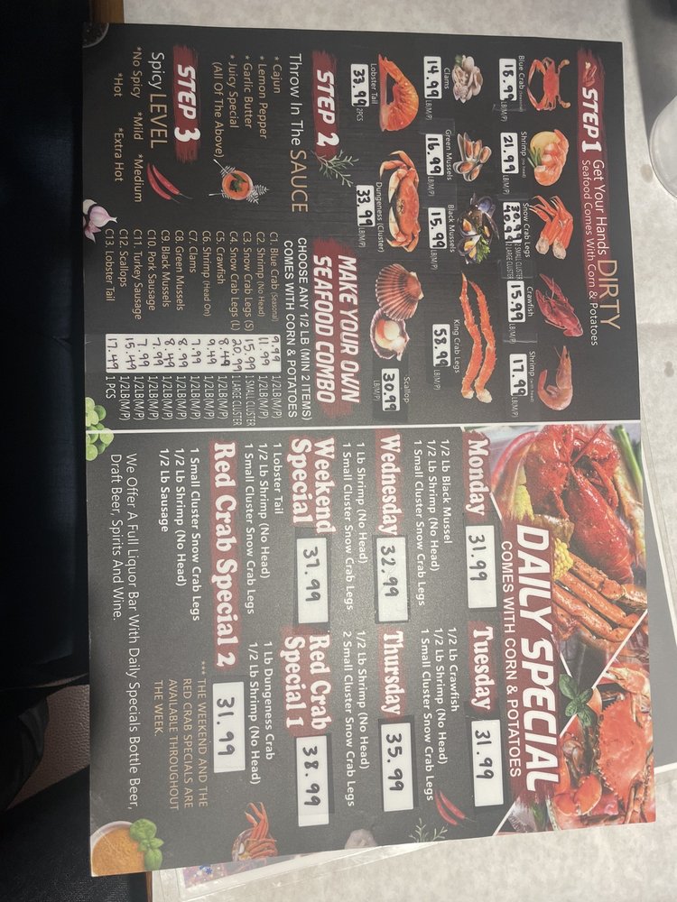 Red Crab Juicy Seafood in Durham offers a unique Cajun/Creole seafood dining experience. With a range of dining utilities like delivery, takeout, and a full bar, this spot caters to all preferences. The menu is extensive, featuring options like juicy shrimp, succulent crab legs, and flavorful crab cakes. The restaurant's daily specials provide great value with combos like mussels, shrimp, and snow crab. Customers rave about the delicious food, quick service, and positive atmosphere. Whether you're a seafood lover or just looking for a new dining spot, Red Crab Juicy Seafood is worth a visit for a satisfying meal with attentive service and a unique ambiance.